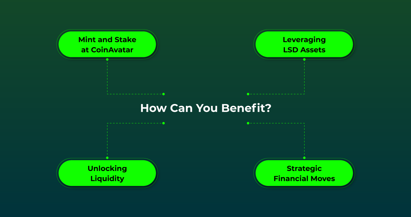 And here's where it gets even more interesting. CoinAvatar lets you do more with your digital assets than borrow money against them. You can stake your Non-Fungible Assets on the platform, like putting your money in a savings account that earns interest. This way, you're not just sitting on your digital assets, but actively growing them. It's like having your cake and eating it, too: you get the funds you need now by borrowing and setting yourself up for more gains in the future through staking.